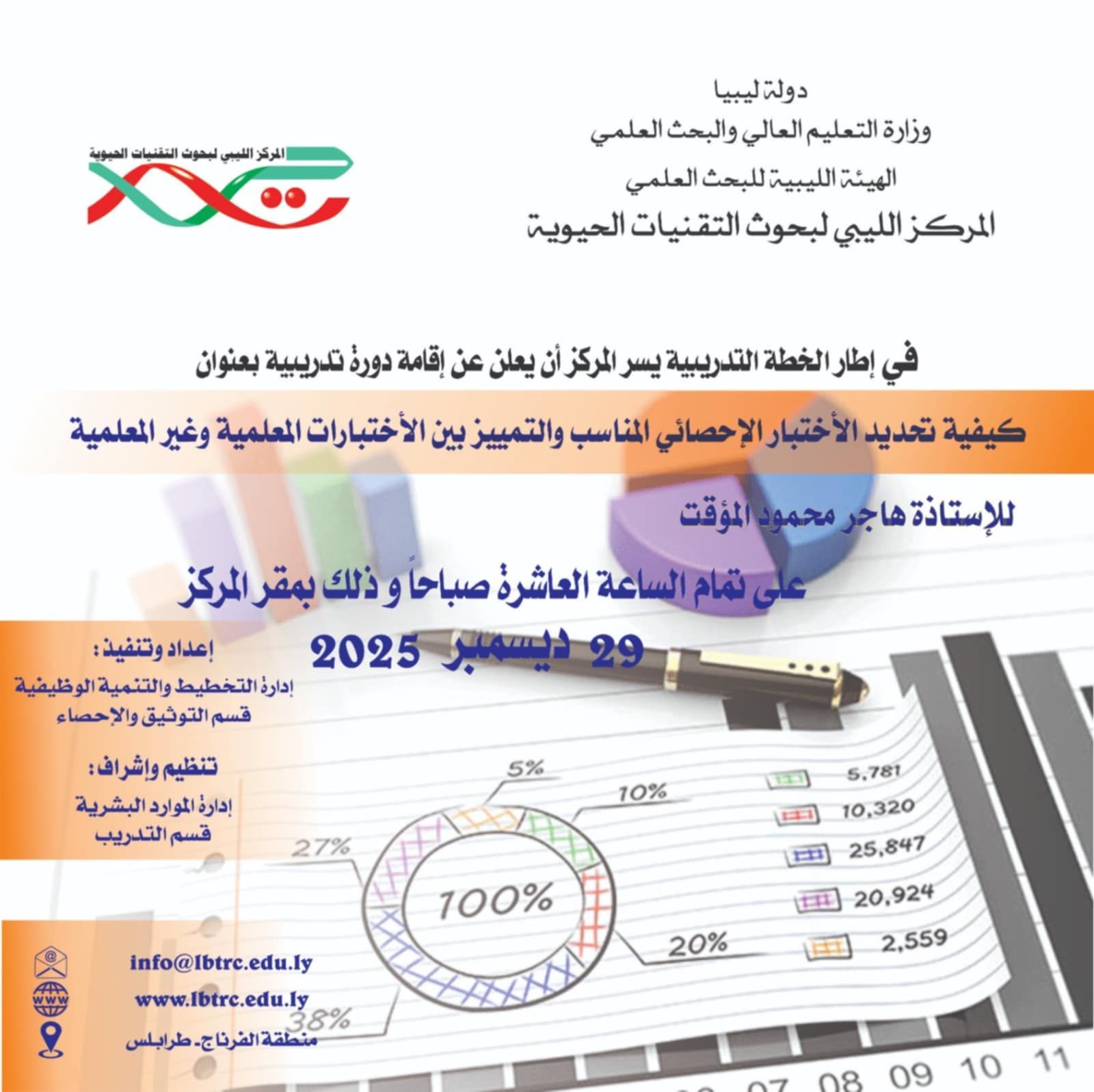 دورة تدريبية بعنوان كيفية تحديد الاختيار الاحصائي المناسب والتمييز بين الأختبارت العلمية وغير المعلمية