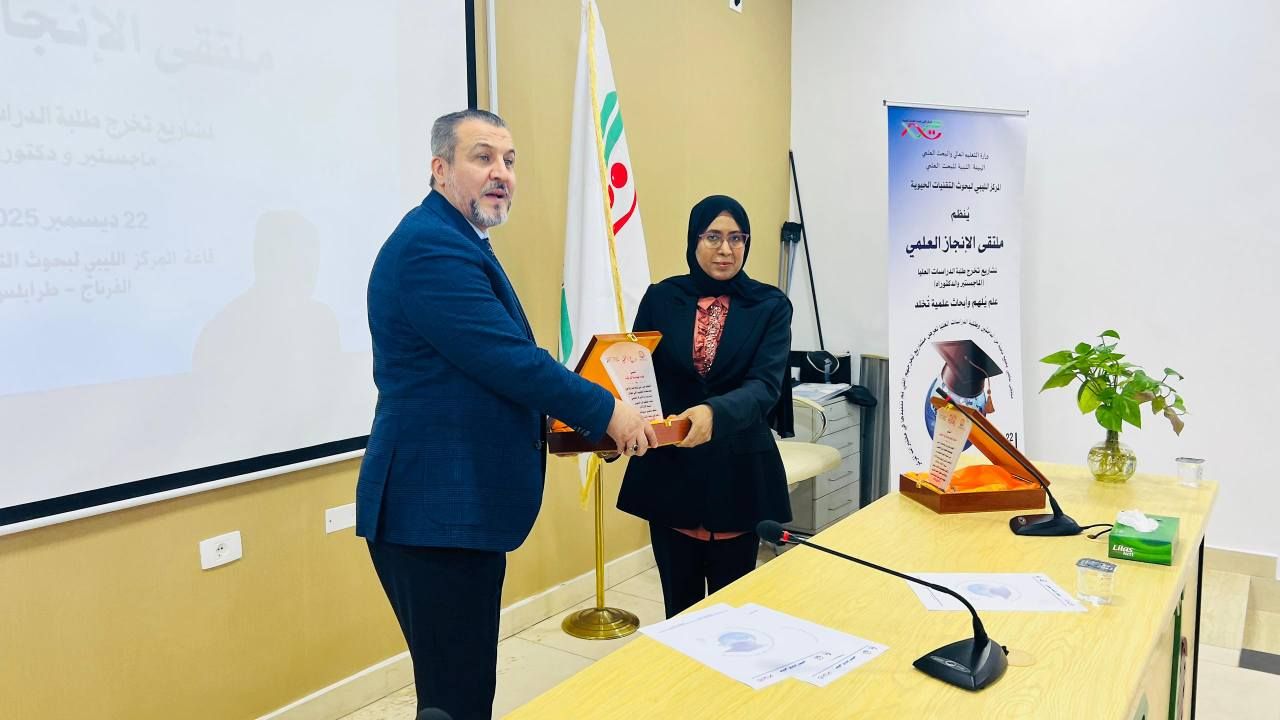 نظم المركز الليبي لبحوث التقنيات الحيوية يوم الاثنين 22 ديسمبر 2025 فعالية بعنوان «ملتقى الإنجاز العلمي لمشاريع تخرج طلبة الدراسات العليا» تحت شعار: «علم يلهم وأبحاث تخلد».