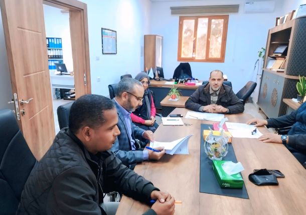 اجتماع نائب مدير عام المركز الأستاذ الدكتور صلاح الدين رمضان المشري مع مدراء الإدارات لمناقشة مسار البحث العلمي بالمركز وتعزيز جودته.