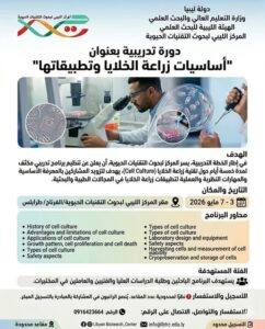 دورة تدريبة "بعنوان أساسيات زراعة الخلايا وتطبيقاتها" - المركز الليبي لبحوث التقنيات الحيوية